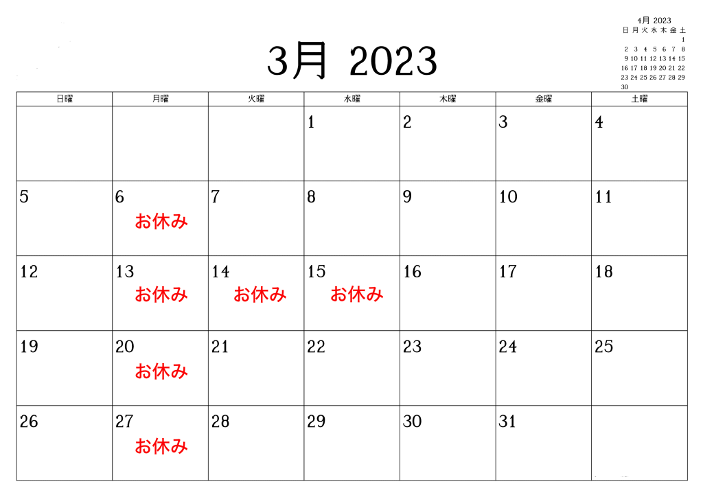 三月は、予約が埋まりやすいのでお早めのご予約お待ちしております!