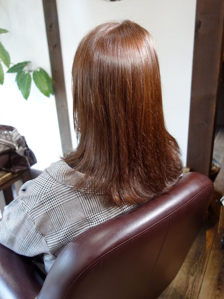 毛先を5センチほどカットして、カラーチェンジしてトリートメントもやったのでツヤ感が生まれました。